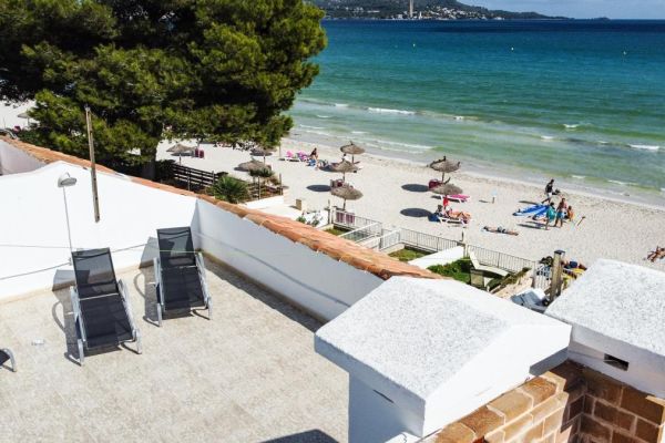 Das exklusive Penthouse Sirra Sunrise in erster Strandlage ist mehr als eine Unterkunft – es ist ein Rückzugsort für alle, die das Besondere suchen. Die Wohnung vereint modernes Design, großzügigen Komfort und eine der begehrtesten Lagen im Norden Mallorcas. Sie verfügt über einen Wohn- und Essbereich mit TV, WLAN und elegantem Essplatz sowie eine voll ausgestattete Küche mit direktem Zugang zur Terrasse, ideal für entspannte Urlaubstage. Drei klimatisierte Doppelschlafzimmer und zwei moderne Badezimmer bieten ausreichend Raum und Privatsphäre – ideal für Familien oder Paare. Highlights: Zwei Terrassen: eine mit hochwertigen Außenmöbeln und Meerblick, die private Dachterrasse sonnig mit Sonnenliegen, Außendusche und Barbecue-Grill Garage im Haus für zusätzlichen Komfort Direkter Strandzugang Restaurants, Cafés und Einkaufsmöglichkeiten in unmittelbarer Nähe Historische Altstadt von Alcúdia nur wenige Minuten entfernt.