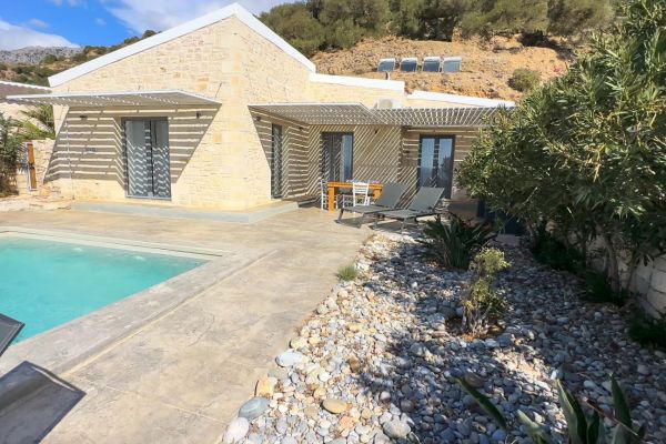 . Die Villa Plakias Dio 2 ist ein exklusives Ferienhaus in einer kleinen, privaten Anlage mit nur drei Einheiten. Sie liegt ruhig am Berghang oberhalb der Bucht von Plakias auf Kreta und bietet absolute Privatsphäre sowie einen beeindruckenden Meerblick. Die Villa ist ideal für bis zu 4 Personen und verfügt über: 2 geschmackvoll eingerichtete Doppelschlafzimmer 1 modernes Badezimmer Großzügigen Wohn- und Essbereich Offene, voll ausgestattete Küche Der private Außenbereich ist ein echtes Highlight: Eigener Pool mit Meerblick BBQ-Grill für gemütliche Abende im Freien Sichtgeschützter Außenbereich für maximale Ruhe Zur Ausstattung gehören außerdem Klimaanlage und WLAN, die den Aufenthalt besonders komfortabel machen. Die Villa Plakias Dio 2 verbindet eine ruhige Lage, unberührte Natur und hochwertige Ausstattung – ideal für erholsame Ferien auf Kreta mit traumhaften Ausblicken. Die