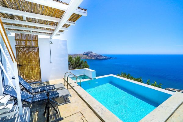 Träumen und Erholung pur! Das ist das Motto von dieser kleinen wunderschönen Ferienhausanlage über dem Meer oberhalb Plakias dem kleinen Touristenort an der Südküste Kretas. Die moderne Einrichtung, die wunderbar große sichtgeschützte Terrasse, der Pool, die himmlische Ruhe und natürliche dieser überwäligende Panoramameerblick lassen den Urlaub unvergesslich machen. Insgesamt gibt es 3 Objekte, gleicher Größe und Ausstattung,die von einander sichtgeschützt sind. Alle haben den gleichen wunderbaren Meerblick. Die Ferienhäuser( Duplexhäuser) wurden 2017 im April fertiggestellt.Ein 4. Chalet wurde 2020 hinzugefügt. Alle verfügen über 1 Wohn-Esszimmer mit offener Küche und Schlafsofa, 2 Doppelschlafzimmer, 2 Bäder und einer Dachterrasse und einer Poolterrase mit Terrassenmöbeln und Liegen..Wlan steht zur Verfügung .Pool 5 x 5 m