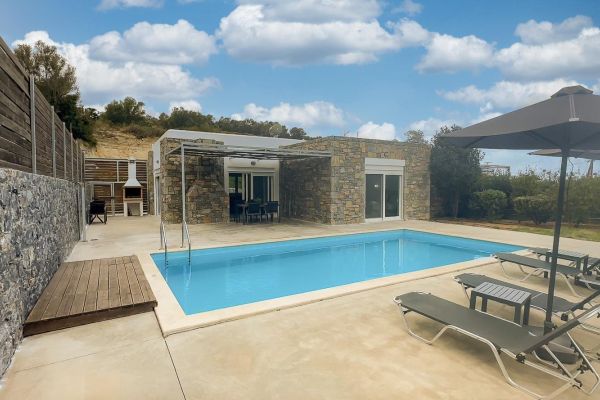 Die kleine Villenanlage, mit 4 Einheiten, befindet sich in ruhiger, reizvoller, hügeliger Umgebung mit Blick auf die Berge bis hinunter zum Meer. Die modernen gemütlichen Ferienhäuser verfügen jeweils über einen Wohn-Essbereich, 2 Doppelschlafzimmer und 2 Bäder. Vom Wohnbereich und von einem Schlafzimmer betritt man die große Terrasse mit Blick auf den sichtgeschützten Garten und den großen Pool. Die Häuser sind alle gleich eingerichtet. Die Anlage liegt unweit zwischen den Orten Mesi und Agia Triada im Bezirk Rethymnon. Die nächste kleine Taverne ist gut zu Fuß in wenigen Minuten erreichbar im malerischen Ort Mesi. Die Häuser sind klimatisiert und verfügen jeweils über eine Waschmaschine, Mikrowelle, Herd, Bügeleisen und Kühlschrank. WLAN ist vorhanden. Auf der Terrasse befindet sich ein gemauerter BBQ-Grill. Die Umgebung eignet sich gut für Wanderungen durch Olivenhaine, bis zum ca. 5,5 km entfernten Strand. Retymnon (ca. 9 km entfernt), mit seiner venezianischen Altstadt, erreicht man mit dem Auto in wenigen Minuten. Dort befinden sich unzählige Restaurants, Cafés und Einkaufsmöglichkeiten und der lange Ortsstrand