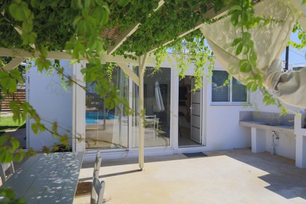 VIDEO ansehen?! Auf YouTube ''Cottage by the sea, Rethymnon, Kreta' Cottage by the sea ist ein grundsanierter gemütlicher Bungalow am Sfakaki Strand. Der Bungalow liegt nur ca. 50 Meter vom Meer entfernt und hat eine Wohnfläche von ca. 70 qm und verfügt über einen Wohn-Essraum mit offener vollausgestatteter Küche, 2 Doppelschlafzimmer, 2 Bäder, eine schöne Terrasse mit Pergola, einen eigenen Pool , mit Liegen, Sonnenschirmen und BBQ-Grill. Ein Weg führt direkt zum Meer. Das Haus hat Klimaanlage in allen Räumen, Sat-TV, Musikanlage und natürlich Wi-Fi-Internet. Nach Rethymnon mit seiner berühmten Altstadt sind es nur wenige Autominuten. Es gibt auch eine Bushaltestelle. Einkaufsmöglichkeiten, Restaurants und Cafés befinden sich in der näheren Umgebung.