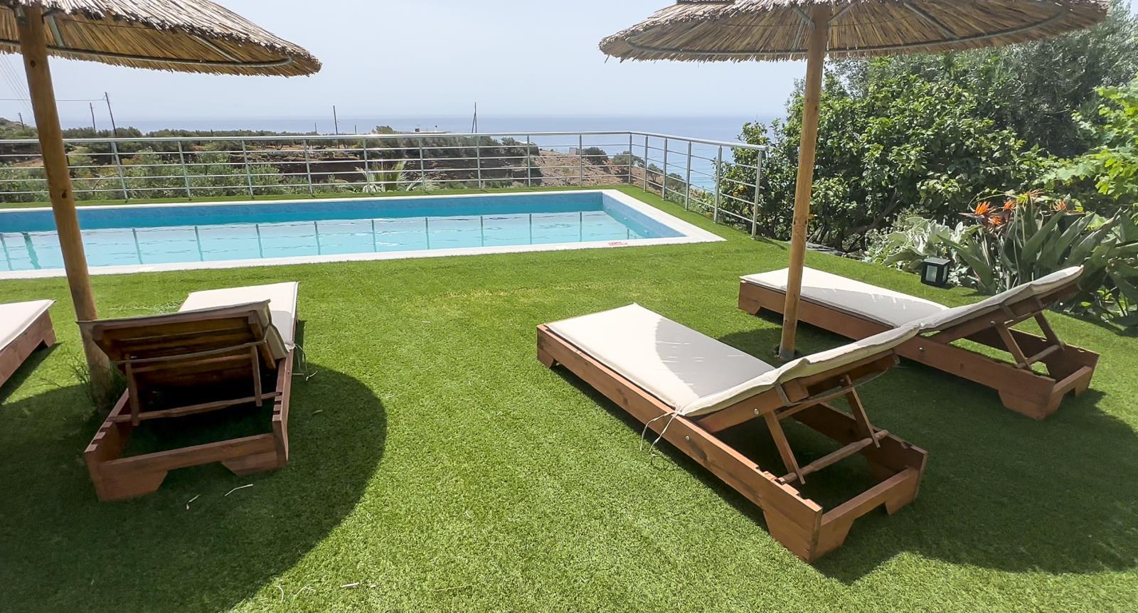 Natur und Erholung suchen. Nur ca. 150 m vom langen Sandstrand entfernt, genießen Sie hier entspannte Urlaubstage fernab vom Trubel. Der gepflegte Garten im maritimen Stil und der große Gemeinschaftspool (10 × 4 m – Nutzung nur durch 2 Einheiten) sorgen für mediterranes Urlaubsfeeling mit viel Privatsphäre Ausstattung & Aufteilung (1. Etage – eigener Zugang) Offener Wohnbereich Doppelbett im Galeriebereich Masterschlafzimmer Duschbad Große Terrasse mit Meer-, Berg- und Gartenblick Grill vorhanden