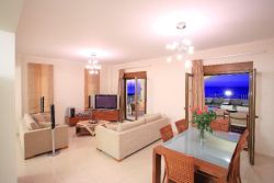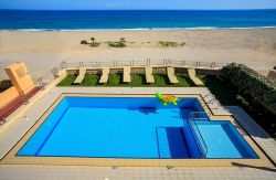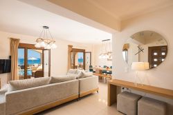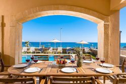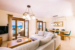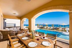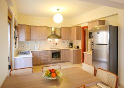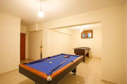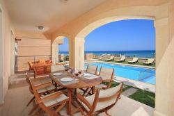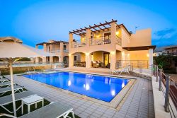 Die Villa Aral besteht aus 3 Ebenen. Beim Betreten des Hauses gelangt man zunächst in den Wohn-Essbereich, die vollausgestattete Küche und 1 Doppelschlafzimmer mit 1 Bad ensuite. Vom Erdgeschoss kann man durch die Glastüren auf die überdachte Veranda mit Aussenmobiliar gelangen. Von dort aus hat man einen schönen Überblick auf den Pool, die Sonnenliegen und Sonnenschirme. Die kleine angelegte Rasenfläche ist perfekt zum Spielen für kleine Kinder. Der direkte Blick auf das kretische Meer und den Strand lässt Stress in Sekunden vergessen. Über eine interne Marmortreppe gelangt man schließlich zum Obergeschoss, wo sich 4 weitere Doppelschlafzimmer und 2 Badezimmer befinden. Alle der 4 Doppelschlafzimmer verfügen über einen eigenen Balkon mit Meerblick oder Blick auf den Garten. Im Untergeschoss befinden sich das 6. Doppelschlafzimmer und 1 Badezimmer. Darüber hinaus befindet sich dort ein Spielzimmer mit Billiardtisch und Tischkicker. Die 5 Doppelschlafzimmer im Ober- und Erdgeschoss sind mit einer Klimaanlage ausgestattet. Lediglich das 6. Doppelschlafzimmer im Untergeschoss ist nur mit Ventilatoren ausgestattet. Zur Austattung der Villa gehören zudem 1 DVD-Player, 1 Fernseher mit Sat-TV, 1 CD-Player und WLAN.