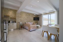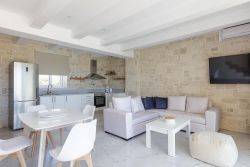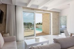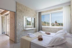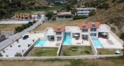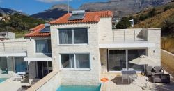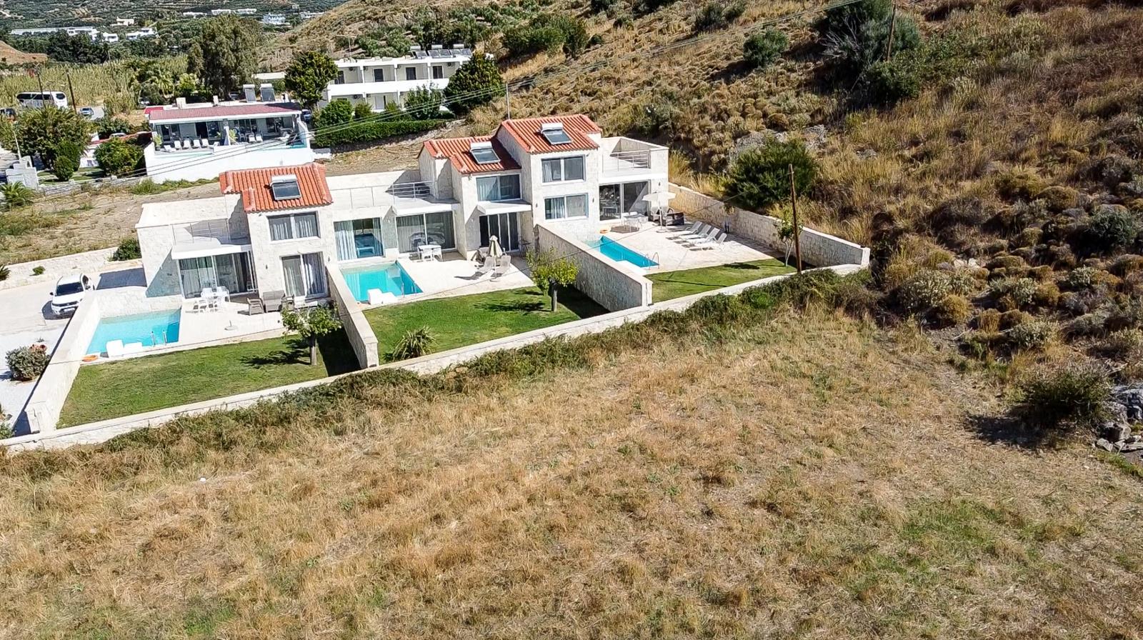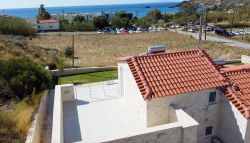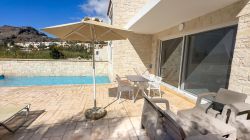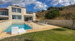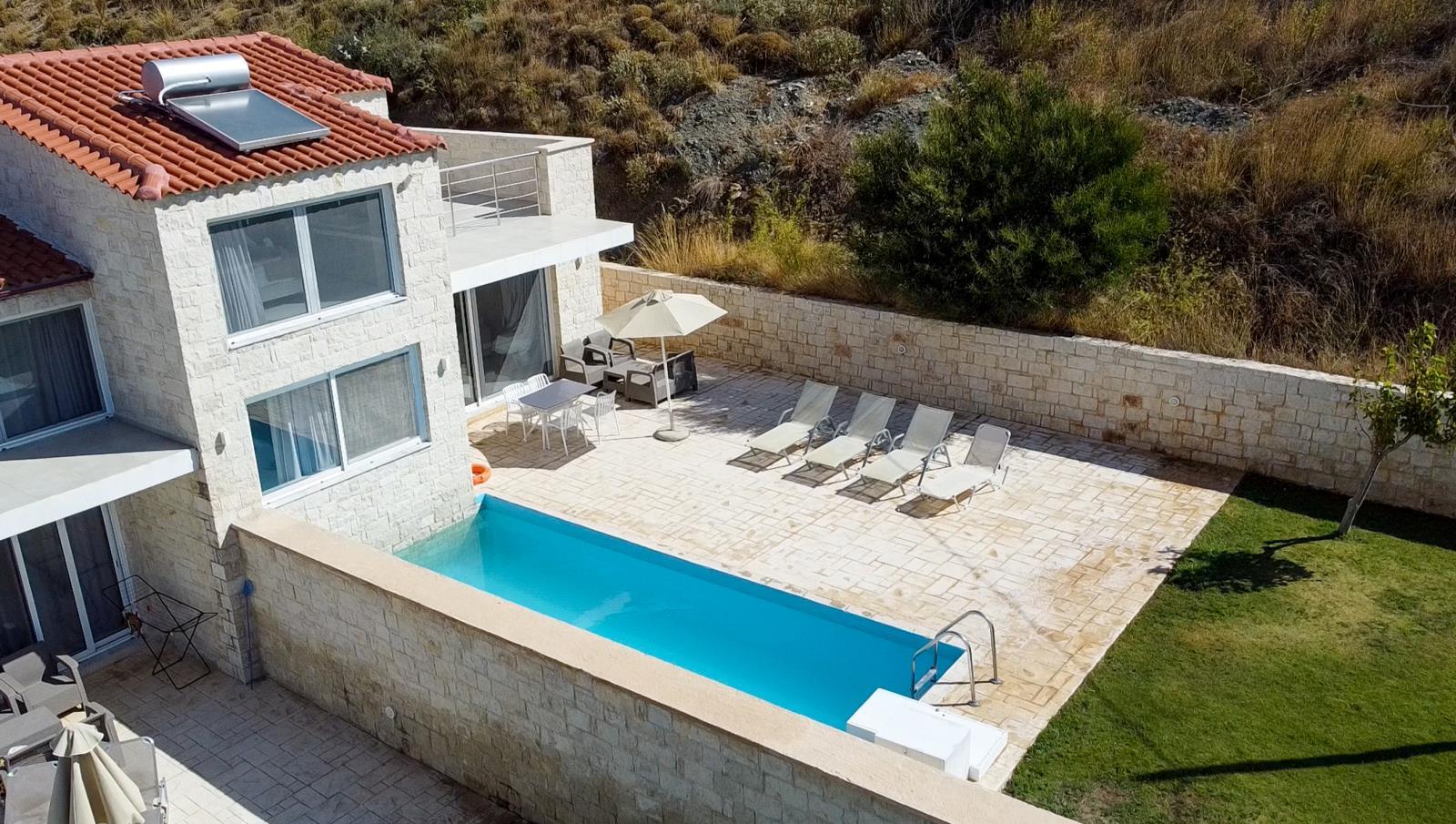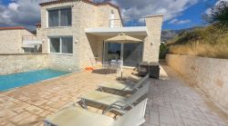Das Chalet ist eines von 3 gleich eingerichteten neuerbauten Ferienhäusern mit Garten und eigenem Pool mit Liegen und Gartenmöbeln. Es ist nur ca. 80 m vom Sandstrand von Damnoni entfernt. Das Haus verfügt im Erdgeschoss über einen Wohn-Essbereich mit offener Küche und ein Doppelschlafzimmer mit Bad ensuite und Zugang zur Terrasse. Im Obergeschoss befindet sich das 2. Doppelschlafzimmer, ebenfalls mit einem Bad ensuite sowie Zugang zur Dachterrasse mit Blick zum Meer. Das Chalet verfügt über WLAN, TV, Netflix, Waschmaschine und A/C-Klimaanlage. Es wird mehrmals pro Woche gereinigt.