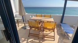 Ferienwohnungen mit Meerblick an der Südküste Kretas bei Kerames In einer kleinen Ferienanlage nahe Kerames an der Südküste Kretas stehen zwei Ferienwohnungen zur Vermietung. Die Anlage besteht insgesamt aus sechs Wohneinheiten und liegt direkt am Meer in ruhiger, naturnaher Umgebung. Jede der beiden klimatisierten Ferienwohnungen verfügt über ein separates Doppelschlafzimmer sowie zwei Schlafsofas im Wohnbereich und bietet Platz für bis zu vier Personen. Die Wohnfläche beträgt jeweils ca. 40 m². Zur Ausstattung gehören ein Wohn-Essbereich, TV, kostenfreies WLAN sowie eine offene Küchenzeile. Vom Wohnbereich aus gelangen Sie auf die private Terrasse mit freiem Meerblick. Ein Badezimmer ist ebenfalls vorhanden. Die Terrassen sind mit Gartenmöbeln ausgestattet und bieten einen unverbaubaren Blick auf das Libysche Meer. Ruhige Lage direkt am Strand Die Ferienwohnungen an der Südküste Kretas liegen direkt am Strand und sind ideal für Gäste, die Erholung, Ruhe und Natur suchen. Eine Taverne befindet sich in etwa 200 m Entfernung. Der Ort Kerames mit Einkaufsmöglichkeiten ist ca. 3–4 km entfernt. Der nächstgrößere Ort Spili liegt rund 20 km entfernt. Die historische Stadt Rethymnon mit ihrer Altstadt, Festung, Restaurants und Cafés erreichen Sie nach weiteren ca. 20 km. Ideal für einen entspannten Kreta-Urlaub Diese Ferienwohnungen bei Kerames eignen sich besonders für Paare und Familien Gäste, die eine Ferienwohnung direkt am Meer auf Kreta suchen Urlauber, die die ursprüngliche Südküste Kretas erleben möchten