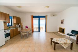 Von den insgesamt 6 Wohneinheiten (klimatisiert) von der Konia Anlage sind die 2 größten Apartments, (die Premium Apartments ) für insgesamt 6 Personen ausgelegt. Diese verfügen jeweils über 1 Wohn-Essbereich mit Schlafsofa für 2 Personen, Fernseher mit deutschem TV, Internet, WLAn und eine Küchenzeile sowie über 2 Doppelschlafzimmer und 1 Badezimmer. Die Aufteilung der Wohnung ist bis auf das extra Schlafzimmer identisch mit dem der beiden normalen Apartments für 4 Personen. Auch von den Premium Apartments betritt man die Terrasse vom Wohnbereich. Die Terrasse ist mit Terrassenmöbeln und Liegen ausgestattet. Der Blick von dort über das Lybische Meer ist einfach überwältigend.