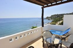 Die Lage der Anlage Konia befindet sich direkt am Meer, Ein reiner Naturstrand links und rechts der Anlage erstreckt sich Kilometer lang ohne Bebauung. In 200 m Entfernung befindet sich eine Taverne in dieser Bucht. Griechische Küche wird dort angeboten mit herrlichem Ausblick auf das Meer. Dort kann man z.B. die einmaligen Sonnenuntergänge bei griechischen Salat und einer Flache Rotwein ausklingen lassen. Einfach Urlaubsfeeling pur. Ein kleiner Lebensmittelladen befindet sich im nahen Dorf Kerames. ca. 3 km von der Anlage entfernt. Von dort geht die kleine Landstraße über den Gebirgspass in Richtung Norden und in ca. 15 km stößt man auf die National Str. die Nord und Südkreta verbindet. Im Norden Rethymnon und im Süden Agia Gallini es sind die beiden nächsten großen Touristenorte. Ein Besuch lohnt sich.
