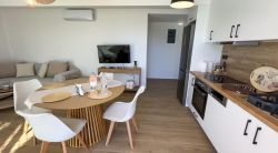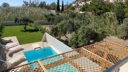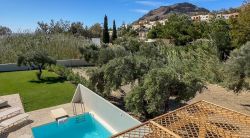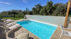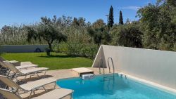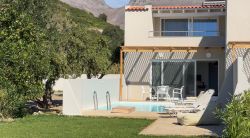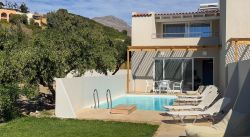 Das neuwertige Chalet Bluemüto 7 verfügt über einen eigenen Pool mit Terrassenmöbeln und Garten. Es ist nur ca.1 90 m vom Strand entfernt. Das Haus verfügt im Erdgeschoss über einen Wohn-Essbereich mit einer offenen Küche, ein Doppelschlafzimmer mit Bad ensuite. Im Obergeschoss befindet sich das 2. Doppelschlafzimmer mit ebenfalls einem Bad ensuite, sowie eine Balkonterrasse mit Blick auf die Poolterrasse bis zum Meer. WLAN, Sat-TV, Klimaanlage sind vorhanden. Ein Parkplatz befindet sich auf dem Grundstück. Ideal für Familien und Gäste, die nur einen kurzen Weg zum Strand mit entsprechenden Tavernen vor Ort bevorzugen. Zum Touristenort Plakias, mit zahlreichen Einkaufsmöglichkeiten, sind es nur ca. 3 km.