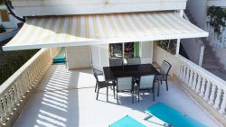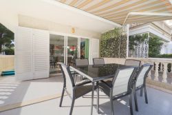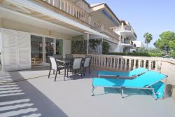 Sie verfügt über: Wohnzimmer mit Sat-TV, WLAN und Klimaanlage Einbauküche 3 Schlafzimmer, zwei davon mit Klimaanlage 2 Badezimmer Sonnenterrasse (ca. 20?m²) mit Außenmobiliar und Markise, ideal zum Verweilen in der Sonne Die Wohnung liegt nur 50?m vom Sandstrand Playa de Alcudia entfernt. Eine Strandbar ist ca. 100?m entfernt. Einkaufsmöglichkeiten, Restaurants und Cafés sind ca. 300?m entfernt. Die Tourismussteuer (Ecotasa) ist vor Ort separat an den Verwalter zu zahlen.
