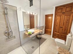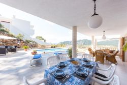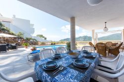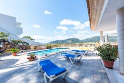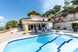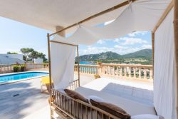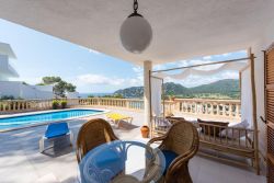 Die schöne Villa Canyamel mit eigener Poolterrasse liegt nur ca. 250?m vom Sandstrand von Canyamel entfernt. Von der Poolebene eröffnet sich ein herrlicher Blick auf den Strand und die Bucht. Die Villa liegt in ruhiger Hanglage und verfügt über 2 Ebenen: Eingangsebene: großer Wohn-Essbereich, Küche, 1 Bad, Zugang zur 100?qm Poolterrasse mit Terrassenmöbeln, Liegen und Sonnenschirm Obergeschoss: 2 Doppelschlafzimmer, 1 Bad, Dachterrasse mit Blick auf Poolterrasse, Strand und Bucht Alle Schlafzimmer sind mit A/C ausgestattet. Die Villa bietet Meerblick, einen privaten Pool, Einkaufsmöglichkeiten und Restaurants in fußläufiger Entfernung