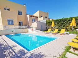 Chalets Jani befindet sich nur 500m vom schönen Sandstrand von Adelianos Kambos entfernt dort befinden sich Restaurants, Bars,Supermärkte, Cafe's ,Geldautomaten etc. Die Chalets liegen auf einer Anhöhe,Sie hat einen wunderschönen Blick auf das Meer und die Berge, und jeweils einen privaten Swimmingpool, einen Garten und einen eigenenPrivatparkplatz. Die Villen verfügen über drei Schlafzimmer (mit Doppel und Einzelbetten) und zwei Badezimmer, eine voll ausgestattete, offene, moderne Küche und ein Wohnzimmer mit Sofa, Essbereich, Satellitenfernsehen, Soundsystem, Klimaanlag Es gibt überall WiFi-Abdeckung. Der Außenbereich verfügt über einen privaten Swimmingpool, einen Grillplatz, Außenmöbel, Sonnenschirme und Liegen. Die Haupt- und Schlafzimmer haben eine fantastische Aussicht bis zum Meer. Die Villa wird täglich gereinigt und die Bettwäsche und Handtücher werden zweimal pro Woche gewechselt. Der Sandstrand Adelianos Kambos ist nur 500 m entfernt und verfügt über einen bewirtschafteten Sandstrandmit einer großen Auswahl an Wassersportarten. Das Nachbar Chalet kann ebenfalls gebucht werden (gleiche Größe und Ausstattung) dann wäre Platz für 14 Personen.