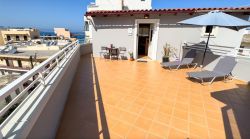 'Ein Haus auf dem Dach'. Das ist ein außergewöhnliches Penthouse für 2 Personen, mit einer 40 qm Dachterrasse, über den Dächern von Chania. Die schöne große Terrasse ist zur privaten Alleinnutzung vorgesehen und verfügt über Liegen, Sonnenschirm und Terrassenmöbel. Das Penthouse Chania verfügt über Klimaanlage und besteht aus einem Wohn-Essraum mit offener Küche, einem Duschbad mit Massagedusche und einem Doppelschlafzimmer. Von der Terrasse eröffnet sich ein toller Blick über die Dächer von Chania bis zum nahe liegenden Stadtstrand (ca. 50 m entfernt). Dort gibt es zahlreiche Restaurants, Cafés und EInkaufsmöglichkeiten. Die schöne Altstadt von Chania ist fußläufig gut zu erreichen. Ideal für Paare, die Kultur, Stadtleben und Strand kombinieren wollen.Das Penthouse verfügt über Klima A/C und Wlan.