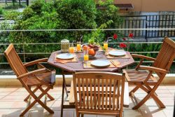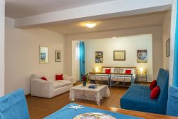 Das Haus bietet Platz für. 6 Personen . Im Erdgeschoss befinden sich die Küche, Essbereich, Wohnbereich und 1 Badezimmer mit Dusche. Der Zugang zur Terrasse mit Aussenmobiliar ist ebenfalls dort. . Der Wohnbereich ist mit Sofa, DVD- und CD-Player ausgestattet. Im Untergeschoss ist ein Doppelschlafzimmer ohne Klimaanlage, welches dafür über Ventilatoren verfügt. Im Obergeschoss sind 2 weitere Doppelschlafzimmer mit Klimaanlage. Eines davon ist zudem mit 1 Fernseher und eigenem Zugang zu dem Balkon ausgestattet. Des Weiteren befindet sich im Obergeschoss 1 Badezimmer mit Badewanne und Waschmaschine. Der Ausblick vom Balkon mit Aussenmobiliar bietet die Möglichkeit Abende hervorragend ausklingen zu lassen. Der Garten und der BBQ-Grill steht dem Ferienhaus Iannis und dem Ferienhaus Chalet Castello zur Verfügung. Freies WLAN ist vorhanden.
