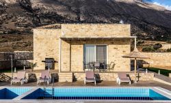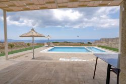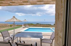 Das Ferienhaus ist eine Meerblick-Villa in einer ruhigen Umgebung, 2,0 k m mit dem Auto vom Strand Triopetra an der Südküste von Kreta entfernt.