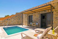 An der Südküste Kretas zwischen Tripetra und Agia Galini, befindet sich das kleine Chalet in einer neuerbauten kleinen Anlage von nur 7 Einheiten. Das Chalet ist für 2 Personen ausgelegt und verfügt über einen eigenen Pool und Meerblick. Die nagelneue Anlage ist harmonisch eingebettet in die Umgebung und liegt ab vom allgemeinen Touristentrubel. Sie ist nur ca 250 m vom Meer und den großzügigen naturbelassenen Sandstränden entfernt. Eine Taverne mit griechischer Karte, einem Cafe,einer kleinen Bar und einem Minimarkt befindet sich in der Nähe (ca 200 Meter). Dort kann man bei einem griechischen Salat und einem Glas Rotwein den Sonnenuntergang genießen.