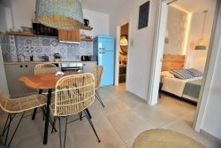 Das Chalet verfügt über einen Wohn Essbereich und einer offener Küche , ein Doppelschlafzimmer, und ein Bad . Eine sichtgeschützte Terrasse mit eigenem Pool( 2,5 x 4 m), Terrassenmöbeln , Liegen und Meerblick lassen tolles Urlaubsfeeling aufkommen. Ein Weg führt hienunter zum Strand.