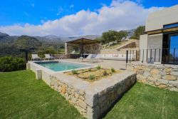 Die Villa Medadolia quadro 4 befindet sich in einer exklusiven, hochwertigen Anlage mit nur 4 Einheiten. (Fertigstellung Mai 2022). Jede sichtgeschützte Villa verfügt über eine große Terrasse mit jeweils eigenem Pool und herrlichem Meerblick. Die Villa Medadolia Qudro 4 ist die oberste Villa und besticht mit einer absolut hochwertigen Ausstattung bis ins kleinste Detail. Mit einem großen TV Screen im Wohnzimmer und weiteren TV Geräten in den beiden Schlafzimmern. Die Villa verfügt über A/C-Klimaanlage und WiFi und eine vollausgestattete Küche. Auf der sehr großen Terrasse befindet sich eine sonnengeschützte Sitzecke mit einem festeingebauten Gasgrill. Des Weiteren verfügt die Terrasse über einen großen Pool (ca. 4,5 m × ca. 6 m) mit Sonnenliegen und einem fantastischen Blick über die Bucht. Zum Sandstrand von Souda sind es nur ca. 400 m. Dort befinden sich 2 Tavernen und eine Strandbar. Zum kleinen Touristenort Plakias mit seinen zahlreichen Einkaufsmöglichkeiten und Tavernen sind es ca. 3,5 km. Die Villa ist für Gäste geeignet, die Ruhe und Entspannung in herrlicher Umgebung genießen möchten.