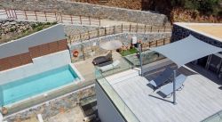Die Villa verfügt über einen fantastischen Ausblick über die Bucht von Plakias. Sie verfügt über einen Wohn/Essbereich mit einer offenen, vollausgestatteten Küche. Vom Wohnbereich hat man Zutritt zu einer großen, teilweise überdachten, Terrasse von ca. 50 qm, die Terrasse ist mit Terrassenmöbeln und Sonnenliegen ausgestattet. Die Villa verfügt über 2 Doppelschlafzimmer und 1 großes Bad. Im Galeriebereich über dem Wohnbereich, befindet sich ein Gästebett, für eine eventuelle 5. Person sowie ein kleines Bad mit Dusche. Von der Galerie betritt man die große Dachterrasse, welche mit Liegen und einem Sonnensegel ausgestattet ist. Von dort eröffnet sich ebenfalls ein fantastischer Blick über die Bucht von Plakias. Das Haus verfügt über WLAN, SAT TV und Klimaanlage. Ein eigener Pool, bietet ausreichend Erfrischung. Nach Plakias und dem Sandstrand sind es mit dem Auto ca. 5 Minuten.Die Villa bietet Entspannung und Ruhe pur.