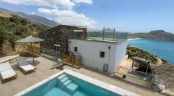 VIDEO ansehen?!auf 'YouTube Minoah 3 Plakias' Die Villa hat einen fantastischem Ausblick über die Bucht von Plakias. Sie verfügt über einen Wohn/Essbereich mit einer offenen vollausgestatteten Küche.VomWohnbereich hat man Zutritt zu einer großen, teilweise überdachten, Terrasse von ca. 50 qm, Die Terasse ist mit Terrassenmöbeln und Sonnenliegen ausgestattet . Die Villa verfügt über 2 Doppelschlafzimmer und ein großes Bad. Im Galleriebereich über dem Wohnbereich, befindet sich ein Gästebett für eine eventuelle 5. Person sowie ein kleines Bad mit Dusche. Von der Gallerie betritt man die große Dachterrasse welche mit Liegen und einem Sonnensegell ausgestattet ist. .Von dort eröffnet sich ein fantastischer Blick über die Bucht von Plakias .. Das Haus verfügt über WLAN ,SAT TV/ Klimaanlage. Ein eigener Pool bietet ausreichend Erfrischung. Nach Plakias und dem Sandstrand sind es mit dem Auto ca 5 Minuten. Die Villa bietet Entspannung und Ruhe pur.