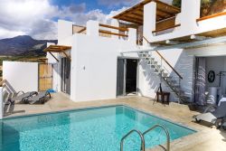 Träumen und Erholung pur! Das ist das Motto dieser kleinen, wunderschönen Ferienhausanlage über dem Meer oberhalb von Plakias, dem kleinen Touristenort an der Südküste Kretas. Chalet Plakias exklusiv 2 verfügt über einen fantastischen Panoramablick über die Bucht von Plakias. Das Chalet ist wie die anderen Einheiten modern und komfortabel eingerichtet. Die große Poolterrasse bietet genügend Platz für Liegestühle und Terrassenmöbel. Das Haus verfügt über 1 Wohn-Essraum mit offener Küche, 2 Bäder und 2 Doppelschlafzimmer mit fantastischem Meerblick. Die Poolterrasse ist von beiden Schlafzimmern und vom Wohnbereich begehbar. Die Dachterrasse verfügt über eine teilweise überdachte Sitzecke mit BBQ-Grill. Zum nahen Touristenort Plakias sind es nur wenige Autominuten. Dort befinden sich Einkaufsmöglichkeiten, Cafés und Restaurants sowie ein langer bewirtschafteter Sandstrand. Buchen Sie jetzt ihren Sommerurlaub 2026! „Exklusiv nur bei uns!“