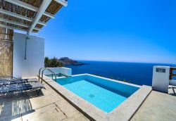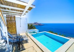 Träumen und Erholung pur! Das ist das Motto von dieser kleinen wunderschönen Ferienhausanlage über dem Meer oberhalb Plakias dem kleinen Touristenort an der Südküste Kretas. Die moderne Einrichtung, die wunderbar große sichtgeschützte Terrasse, der Pool, die himmlische Ruhe und natürliche dieser überwäligende Panoramameerblick lassen den Urlaub unvergesslich machen. Insgesamt gibt es 3 Objekte, gleicher Größe und Ausstattung,die von einander sichtgeschützt sind. Alle haben den gleichen wunderbaren Meerblick. Die Ferienhäuser( Duplexhäuser) wurden 2017 im April fertiggestellt.Ein 4. Chalet wurde 2020 hinzugefügt. Alle verfügen über 1 Wohn-Esszimmer mit offener Küche und Schlafsofa, 2 Doppelschlafzimmer, 2 Bäder und einer Dachterrasse und einer Poolterrase mit Terrassenmöbeln und Liegen..Wlan steht zur Verfügung .Pool 5 x 5 m