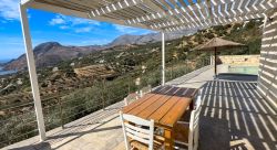 Das Ferienhaus Plakias Tria 3 verfügt über einen Wohn-Essbereich, eine vollausgestattete Küche,Wlan, AC Klimaanlage, 2 Doppelschlafzimmer mit jeweils direkten Ausgang zur Poolterrasse sowie 1 Duschbad. Die Terrasse mit BBQ Grill und mit eigenen Pool ist von den Nachbarn nicht einsehbar und somit kann man den unvergleichlichen Blick über das Libysche Meer in Ruhe genießen.