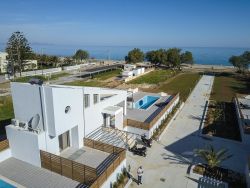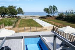 Moderne Villa mit Meerblick und direktem Zugang zum Sandstrand in kleiner Anlage von nur 6 Einheiten . Die Villa verfügt über einen 25 qm Pool, Terrasse mit Liegen und Sonnenschirmen. Die Einrichtung des Hauses ist sehr geschmackvoll und modern gestaltet und bietet einen tollen Komfort. Die vollausgestattete Küche schließt sich an den Wohn-Essbereich im Erdgeschoss des Ferienhauses an. Des Weiteren gibt es ein Doppelschlafzimmer und ein Badezimmer im Erdgeschoss. WLAN, Klima und TV sind vorhanden. Die große Poolterrasse ist vom Wohnbereich zugänglich und bietet Entspannung pur! Vom Wohnbereich führt eine Treppe in das Obergeschoss, wo sich das zweite Doppelschlafzimmer und ein Bad en Suite befinden. Vom Schlafbereich betritt man die große Dachterrasse, von der aus man einen herrlichen Blick über den Strand zum Meer genießen kann. Das dritte Schlafzimmer befindet sich im Untergeschoss, sowie das dritte Badezimmer. Dort befindet sich auch ein großer Sportraum mit Tischtennisplatte, eine Waschmaschine und ein Trockner. Im großen Raum ist es möglich, einen siebten Schlafplatz zu stellen. Einkaufsmöglichkeiten, Restaurants und Cafés befinden sich in der näheren Umgebung und sind gut zu Fuß erreichbar. Rethymnon ist für seine Altstadt bekannt und das Zentrum liegt vom Ferienhaus nur ca. 6 km entfernt..