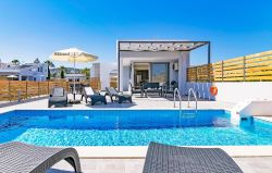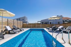 Moderne Villa in keiner Anlage von 6 Einheiten mit direktem Zugang zum Sandstrand.. . Die Villa verfügt über einen Wohn-Essbereich, einem Doppelschlafzimmer und Bad im Erdgeschoß. Vom Wohnbereich betritt man die große Poolterrasse. Im Obergeschoß befindet sich das 2. Doppelschlafzimmer mit einem Bad en Suite sowie einer großen Dachterrasse. Im Untergeschoß befindet sich das 3. Doppelschlafzimmer mit einem Bad und einem großen Hashaltsraum mit Waschmaschine und Trockner.WLAN und Klimaanlage sind vorhanden. Einkaufsmöglichkeiten sowie Restaurants befinden sich in der näheren Umgebung. Rethymnon ist ca. 5 km entfernt. Die Altstadt von Rethymnon mit sienen zahlreichen Restaurants ist en Besuch wert. Es besteht auch eine Busverbindung.