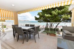 Video ansehen auf YouTube „Sirra Luna, Alcudia“ oder QR-Code scannen in einem der ersten Bilder. Die Ferienwohnung Sirra Luna am Strand von Alcudia liegt direkt am Strand und verfügt über einen eigenen Strandzugang. Die Wohnung bietet: Wohn- und Essbereich mit TV, WLAN und Klimaanlage (A/C) Voll ausgestattete Küche Schlafzimmer und Badezimmer (bitte ggf. Anzahl ergänzen, falls bekannt) Überdachte Terrasse mit Außenmobiliar und direktem Meerblick Direkter Zugang vom Garten zum Strand Kinderbett und Hochstuhl optional Der traumhafte Meerblick sorgt für entspannte Urlaubstage. Einkaufsmöglichkeiten, Restaurants und Cafés sind fußläufig erreichbar. Die Tourismussteuer (Ecotasa) ist vor Ort separat an den Verwalter zu zahlen. Die Stromkosten nach Verbrauch von 0,40?€ pro kWh sind ebenfalls vor Ort mit dem Verwalter abzurechnen.