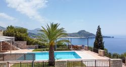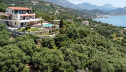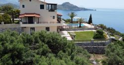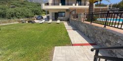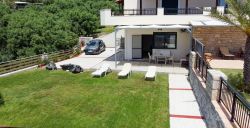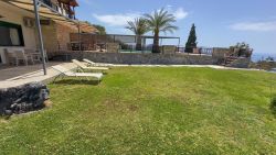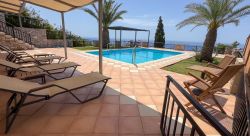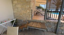 Der angrenzende Garten mit Rasenfläche und der spektakuläre Blick über die Bucht schaffen ein mediterranes Urlaubsgefühl. Ein besonderes Highlight ist der große, zur Alleinnutzung reservierte Pool mit Sonnenliegen und Sonnenschirmen – ideal für erholsame Stunden in privater Atmosphäre. Die idyllische Souda Bay mit einer gemütlichen Taverne direkt am Strand ist etwa 1,2 km entfernt. Den charmanten Ort Plakias mit zahlreichen Einkaufsmöglichkeiten, Cafés und Restaurants erreichen Sie nach etwa 2 km.