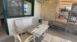 .Von der großzügigen Terrasse sowie dem Garten genießen Sie einen herrlichen Ausblick über die Bucht bis hin zum Libyschen Meer. Die komfortabel ausgestattete Ferienwohnung verfügt über: einen offenen Wohn- und Essbereich mit Schlafsofa, TV und WLAN eine voll ausgestattete Küche mit Geschirrspüler und Kühl-Gefrierkombination ein separates Schlafzimmer mit Doppelbett ein Badezimmer mit Dusche und Waschmaschine Klimaanlage in allen Wohnräumen Direkt vor dem Eingang lädt die große Terrasse mit Gartenmöbeln zum Frühstücken oder Entspannen ein.