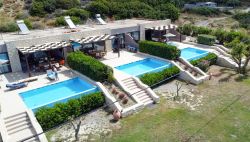 Die exklusive Anlage Villa Stranddomizil Blanca umfasst drei luxuriöse Villen, die direkt am Strand liegen und Platz für bis zu 6 Personen bieten. Jede Villa ist stilvoll eingerichtet und bietet höchsten Komfort für einen unvergesslichen Aufenthalt. Ausstattung: 3 Doppel-Schlafzimmer: Gemütlich und modern, ideal für entspannte Nächte. 2 Bäder: Elegante Ausstattung mit Dusche und/oder Badewanne. Privater Pool: Jede Villa verfügt über einen eigenen Pool mit angrenzender Terrasse. Großer Wohn- und Essbereich: Offenes und helles Design mit viel Platz für gemeinsame Stunden. Voll ausgestattete Küche: Integriert in den Wohnbereich, mit allem, was Sie für Ihre Mahlzeiten benötigen. Außenbereich: Poolterrasse mit Meerblick: Sonnenliegen laden zum Entspannen ein, während Sie einen atemberaubenden Blick auf das Meer genießen. Direkter Strandzugang: Die perfekte Lage direkt am Meer macht Ihren Urlaub besonders. Taverne nur 50 m entfernt: Genießen Sie regionale Köstlichkeiten in der nahegelegenen Taverne, ebenfalls direkt am Strand gelegen. Villa Stranddomizil Blanca ist der ideale Ort für alle, die Luxus, Privatsphäre und die Nähe zum Meer suchen. Ob für einen Familienurlaub oder eine Auszeit mit Freunden – hier erleben Sie mediterranes Lebensgefühl auf höchstem Niveau. Villa Stranddomizil Blanca – Exklusive Anlage mit 3 Luxusvillen direkt am Strand, jede mit privatem Pool, Platz für 6 Personen und traumhaftem Meerblick. Genießen Sie pure Erholung und Komfort, nur 50 m von einer Strandtaverne entfernt.