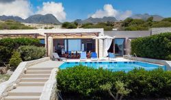 In keiner Anlage von nur 3 Einheiten befindet sich das Stranddomicil Blanca 2 ist ein modernes , am Strand gelegenes Ferienhaus mit 3 Doppelschlafzimmern und eigenem Infinitypool. Es ist nur wenige Schritte vom Sandstrand von Laki entfernt. In der Nähe befinden sich 3 Tavernen, die traditionelle Kost anbieten. Frankokastello ist nur ca. 4 km entfernt. Dort befinden sich Einkaufsmöglichkeiten, Restaurants, etc. Im 2 km entfernten Skaloti befindet sich ein Mini-Markt.