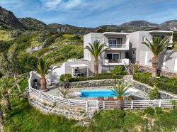 Jedes Haus verfügt über einen gemütlichen Wohn-Essbereich mit Sofa, Wlan Sat TV und offener Küche, zwei komfortable Doppelschlafzimmer sowie zwei moderns Badezimmer. Ein besonderes Highlight sind die zwei fantastischen Terrassen: Die erste Terrasse, zugänglich von einem der Schlafzimmer, ist mit st Außenmobiliar ausgestattet und bietet einen traumhaften Blick auf das tiefblaue Meer – perfekt für entspannte Morgenstunden oder romantische Sonnenuntergänge. Die zweite Terrasse führt über eine Treppe zum privaten Pool, der eine erfrischende Alternative zum nahen Meer darstellt. Auch von hier aus genießen Sie den herrlichen Ausblick auf die Südküste Kretas. Im Garten laden weitere Sitzgelegenheiten zum Verweilen ein, um die idyllische, naturbelassene Umgebung in vollen Zügen zu genießen.Es gibt einen BBQ-Bereich. Die Häuser sind ideal für Gäste, die einen ruhigen Urlaub in relativer Abgeschiedenheit verbringen möchten, ohne auf modernen Komfort verzichten zu müssen. Zur Wahrung der Privatsphäre sind die beiden Häuser durch eine Sichtschutzwand voneinander getrennt und jeweils nicht einsehbar.