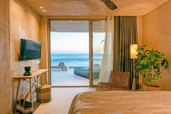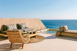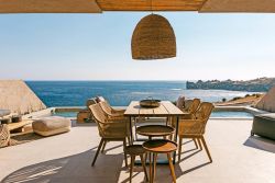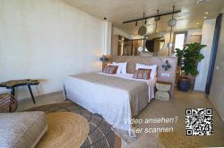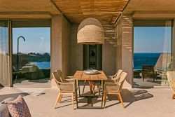 Die moderne, architektonisch außergewöhnliche Bauweise verbindet stilvolles Design mit bioklimatischem Konzept und nahezu energieautarkem Betrieb. Die Gebäude sind harmonisch in die Landschaft integriert und schaffen eine besondere Atmosphäre aus Ruhe, Licht und Weite. Zum Meer und einem naturbelassenen Strandbereich mit Strandliegen und Sonnenschutz sind es nur etwa 30 Meter.