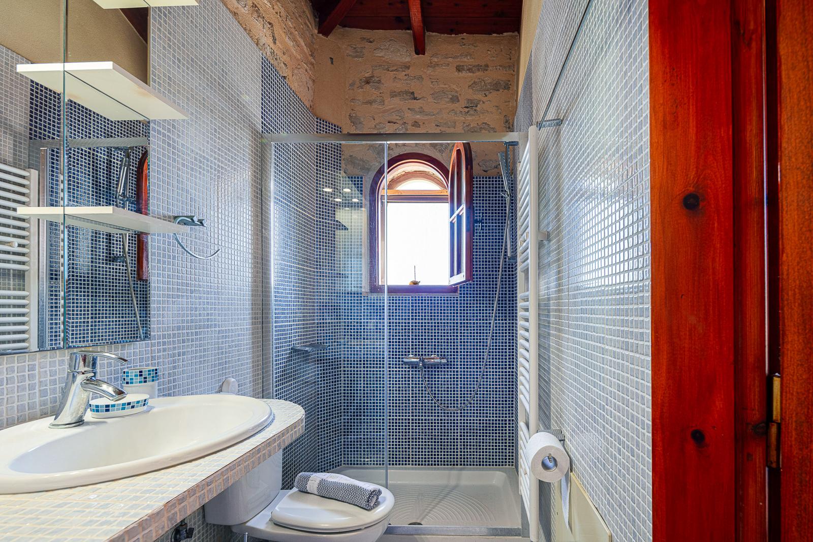 Das Anwesen besteht aus zwei separaten Gebäuden und eignet sich ideal für bis zu 9 Personen.Das Haupthaus bietet einen offenen Wohnbereich mit Kamin und Smart-TV sowie eine voll ausgestattete Küche mit Essbereich für bis zu acht Personen. Hier befinden sich drei Schlafzimmer mit direktem Zugang zur Poolterrasse. Eines verfügt über ein eigenes Bad, die beiden anderen teilen sich ein großzügiges Familienbad. Das separate Studio mit eigenem Eingang bietet zusätzlichen Rückzugsraum. Es umfasst ein flexibel nutzbares Doppelzimmer, ein Duschbad, einen Wohnbereich mit Kamin sowie eine Küchenzeile – ebenfalls mit direktem Zugang zur Poolterrasse.