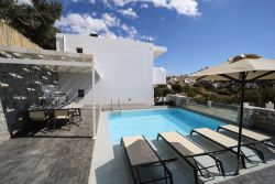 Pedos 1 ist eines von 2 neuerbauten Chalets am Rande des Dorfes Sellia, nur wenige Kilometer den bekannten Touristenort Plakias und dem herrlichen Strand Soudabay entfernt. In ca. 200 m Entfernung befinden sich im Dorf Supermärkte und schöne Tavernen .Nach Plakias und den Strände erreicht man mit dem Auto in ca. 7 Minuten . Das Chalet Pedos 1 hat eine Größe von ca 80 qm und verfügt über 2 Doppelschlafzimmer und 2 Bäder. Im Erdgeschoss befindet sich ein großer Wohn-Essbereich mit einer voll ausgestatteter modernen Küche . Vom Wohnbereich betritt man dann die große Terrasse mit Terrassenmöbeln und herrlichem Blick auf das libysche Meer und die hügelige Umgebung . Das Chalet verfügt über einen ca. 25qm großen privaten Pool mit separten Kinderpool sowie einem schattigen Plätzchen (Pergola), mit BBQ Grill und Gartenmöbel . Die Villa ist voll klimatisiert und bietet kostenfreies WLAN und Sateliten-TV sowie einen eigenen Parkplatz. Es können auch beide Chalets Pedos 1 und Pedos 2 zusammen gemietet werden e. B. für 2 befreundeteten Familien, so ist man zusammen, doch jeder hat seinen eigenen Bereich. Sprechen Sie uns gern an, wir stehen Ihnen gern telefonisch jederzeit zur Verfügung.